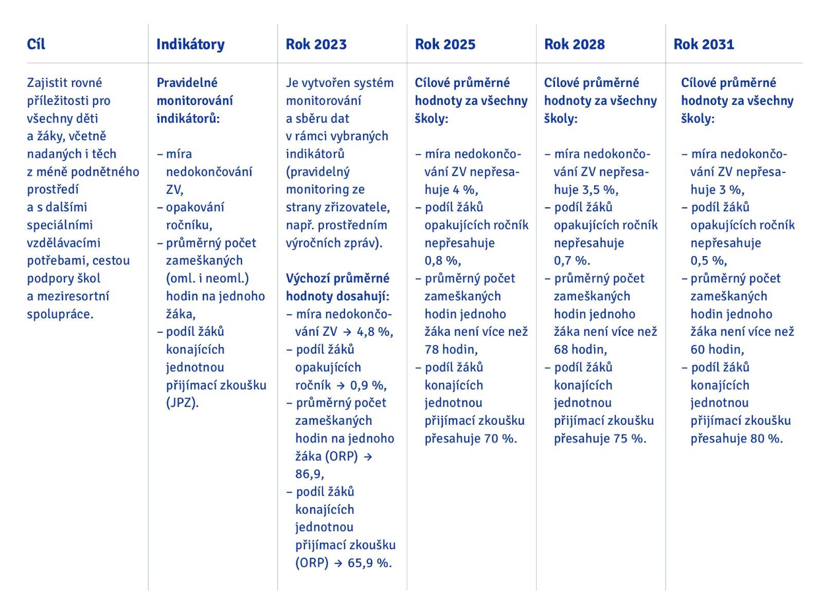 Na základě sebraných dat a informací doporučujeme stanovit maximálně 3–4 cíle, které bude strategie vzdělávání sledovat. Cíl musí dodržovat pravidla SMART, tzn. měl by být konkrétní, dosažitelný, měřitelný, realistický a časově ohraničený.